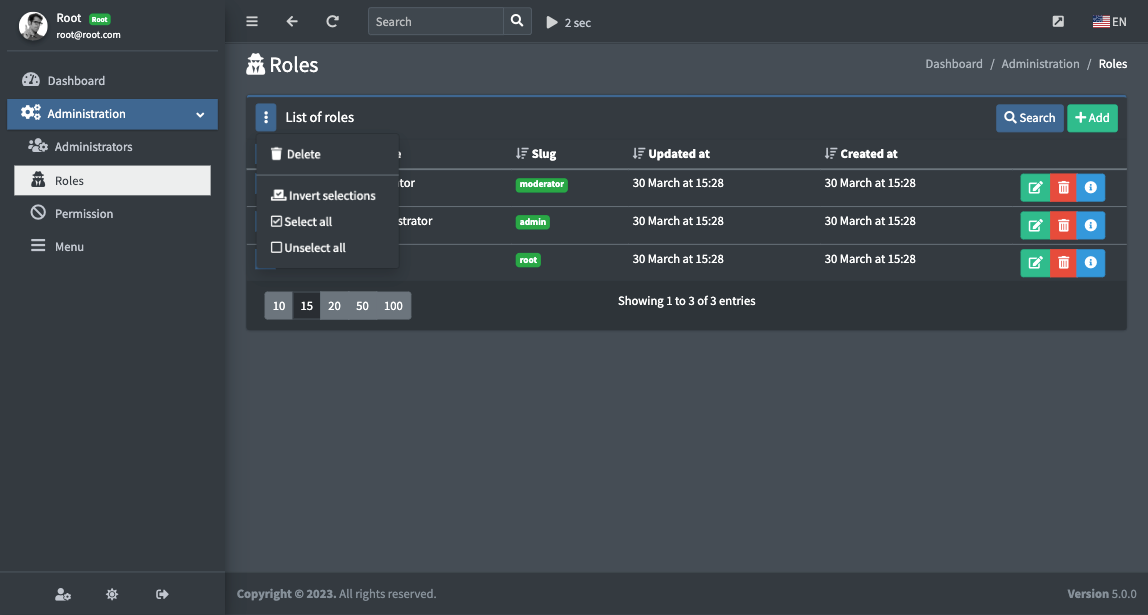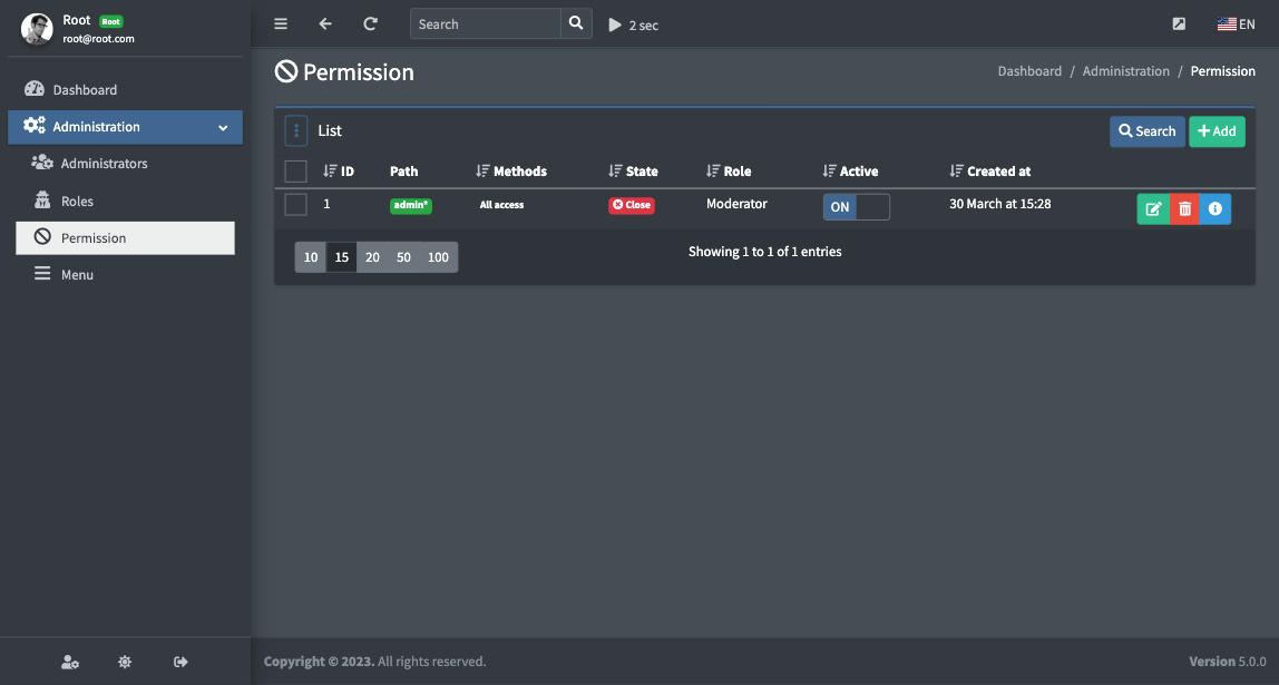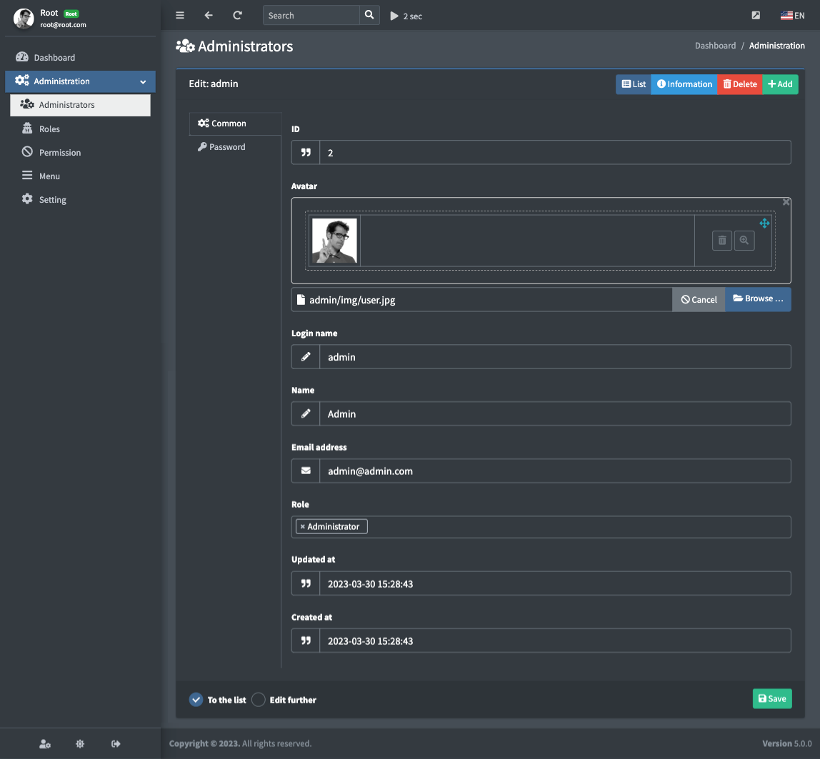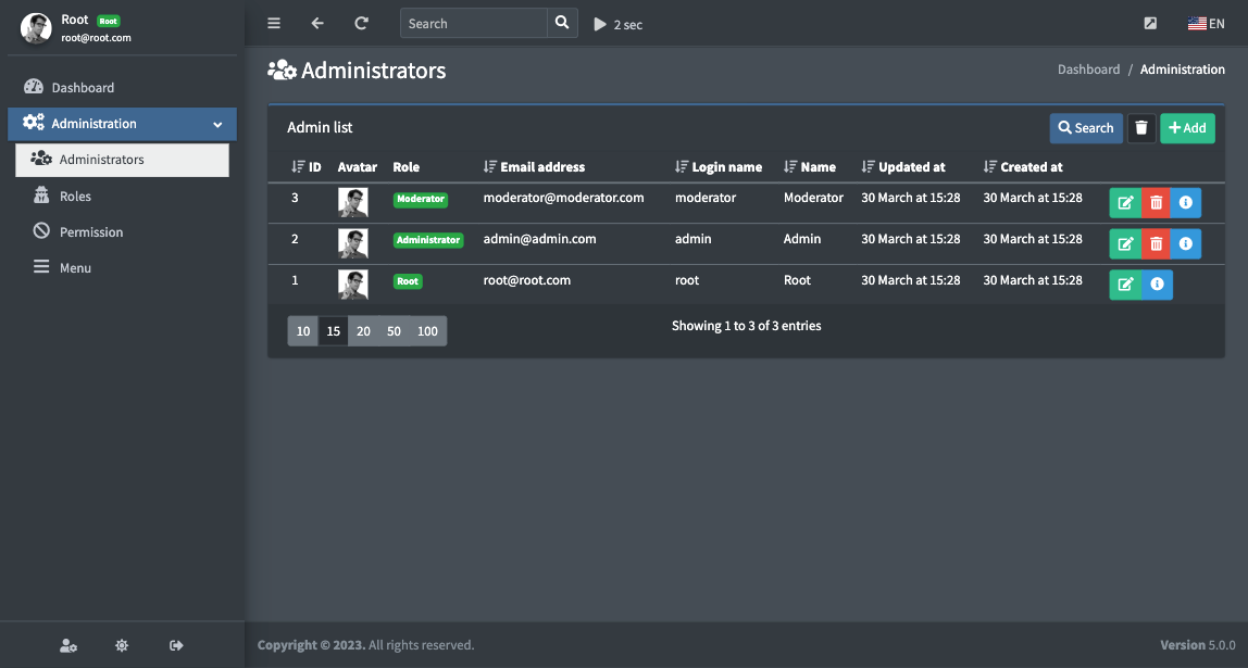 Following the successful installation of the admin panel, the application is pre-configured with a set of default user accounts. These accounts are designed to help you quickly test and navigate through the admin panel's functionalities without the need to create new users immediately. It's important to note that the root user account is integral to the system and cannot be deleted, ensuring that there is always an account with full access to the admin panel.